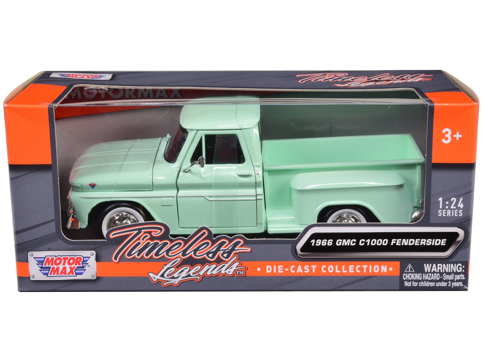 - Brand new 1/24 scale diecast car model of 1966 GMC C1000 Fenderside Pickup Truck Light Green “Timeless Legends” Series die cast model car by Motormax.