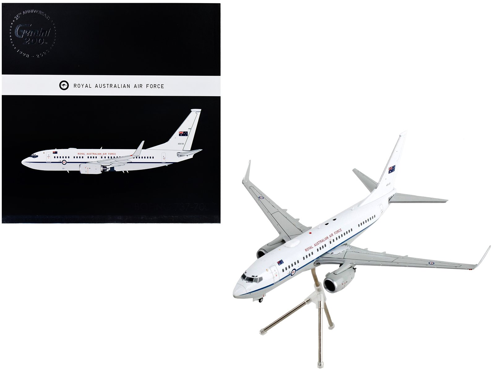 - Brand new 1/200 scale diecast airplane model of Boeing 737-700 Transport Aircraft “Royal Australian Air Force – A36-001” White and Gray “Gemini 200” Series die cast model by GeminiJets.