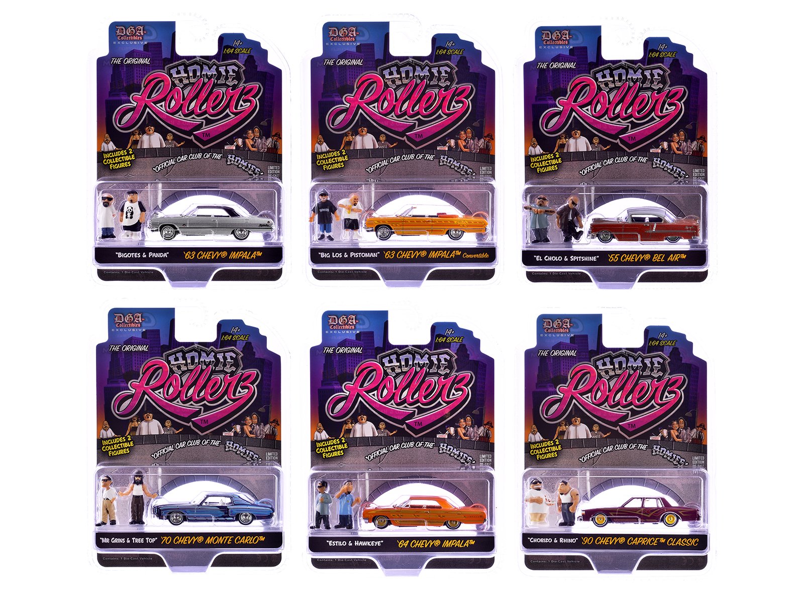 - Brand new 1/64 scale diecast car models of “Homie Rollerz” 2025 Series 1 Set of 6 pieces die cast model cars by Greenlight and DGA.