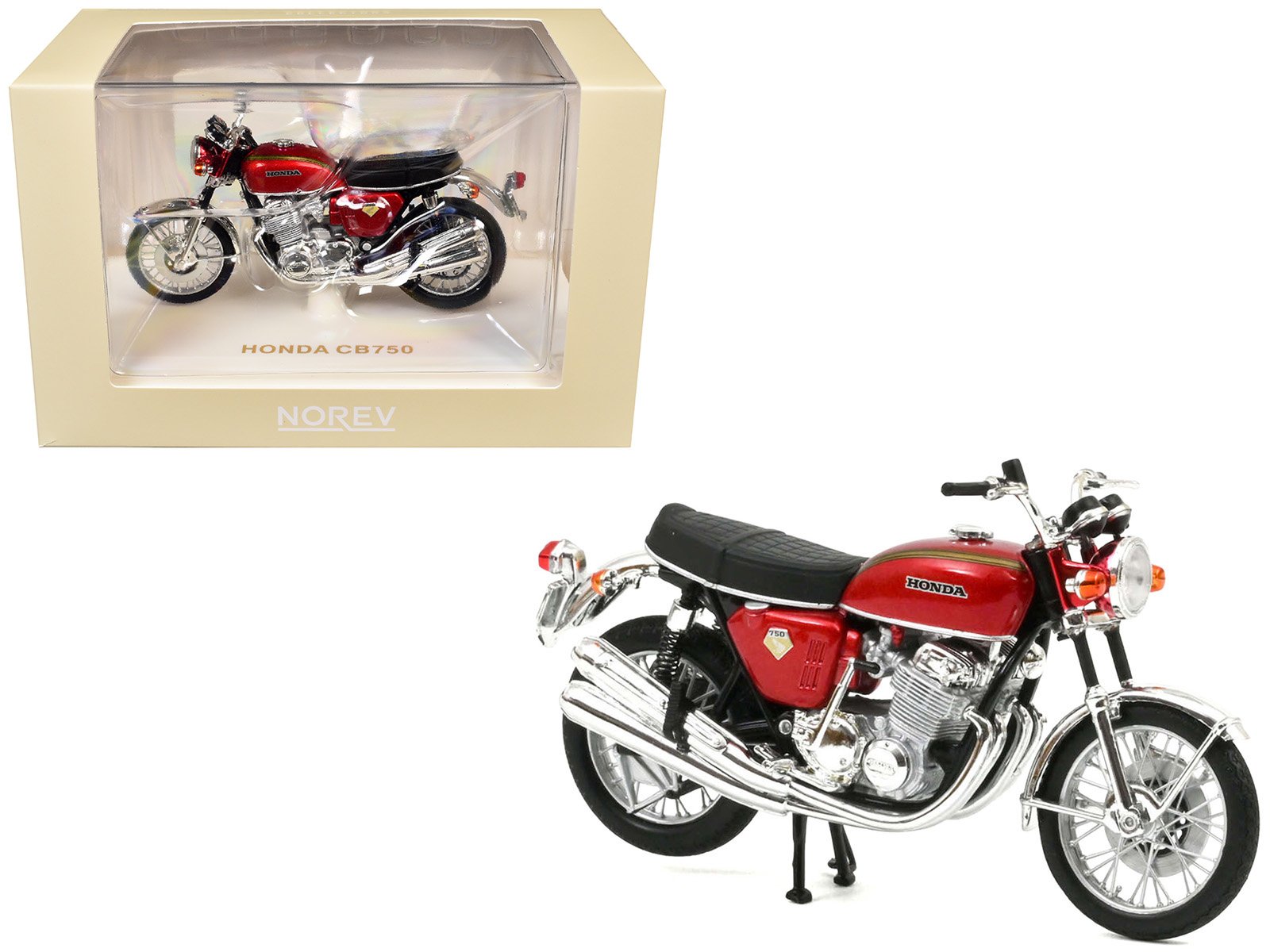 Explore the Honda CB750 Motorcycle Red Metallic 1/18 Diecast Model by Norev, a finely detailed replica designed for both collectors and motorcycle enthusiasts. This officially licensed model captures the essence of the iconic Honda CB750, making it a perfect addition to your diecast collection.
