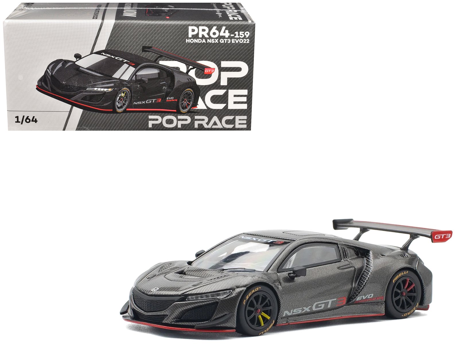 - Brand new 1/64 scale diecast car model of Honda NSX GT3 EVO22 Carbon Edition die cast model car by Pop Race.