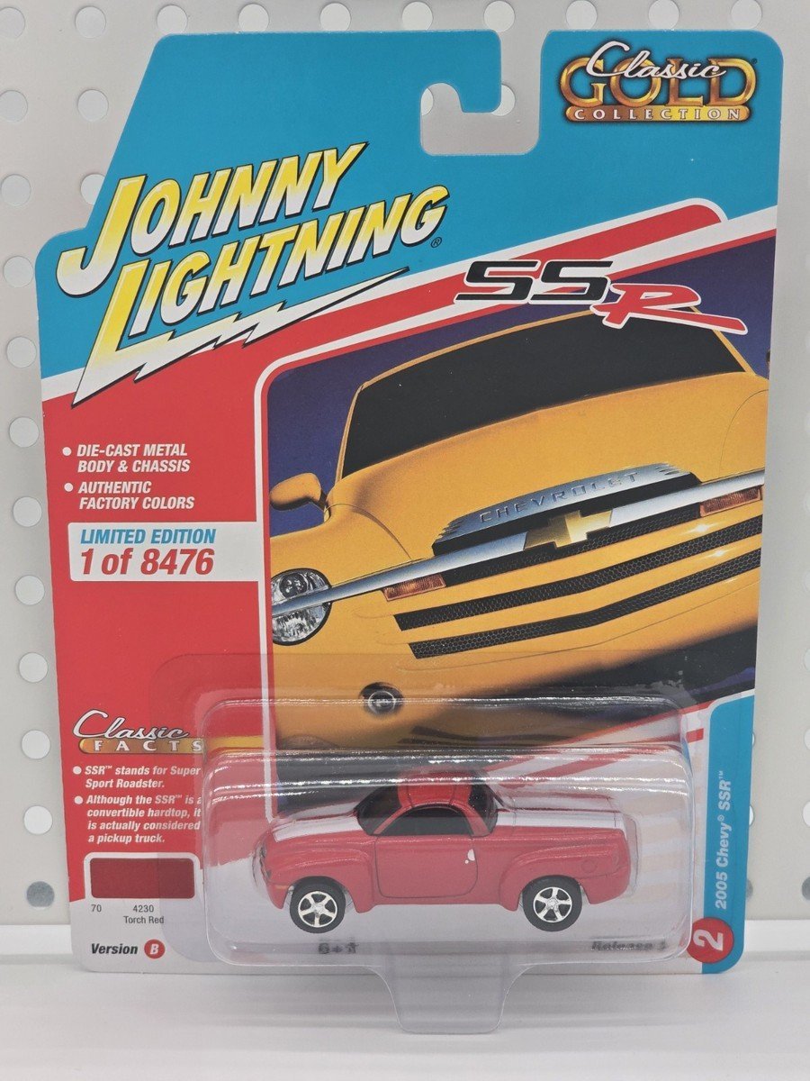 Introducing the Johnny Lightning 2003 Chevrolet SSR Torch Red, a stunning 1:64 scale diecast model that is part of the 2022 Classic Gold Collection Release 3. This collectible is perfect for any serious diecast car enthusiast looking to enhance their collection.