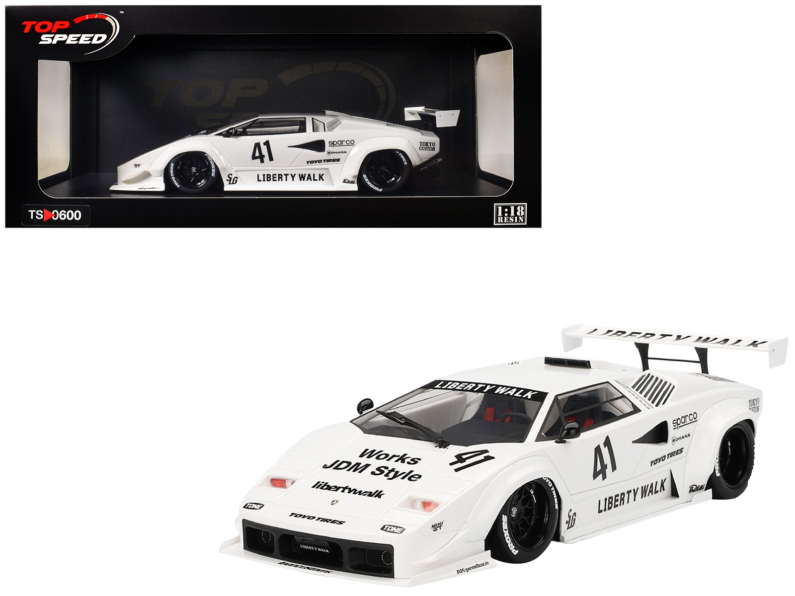 - Brand new 1/18 scale car model of Lamborghini Countach LB-WORKS #41 White “2024 Tokyo Auto Salon” model car by Top Speed.