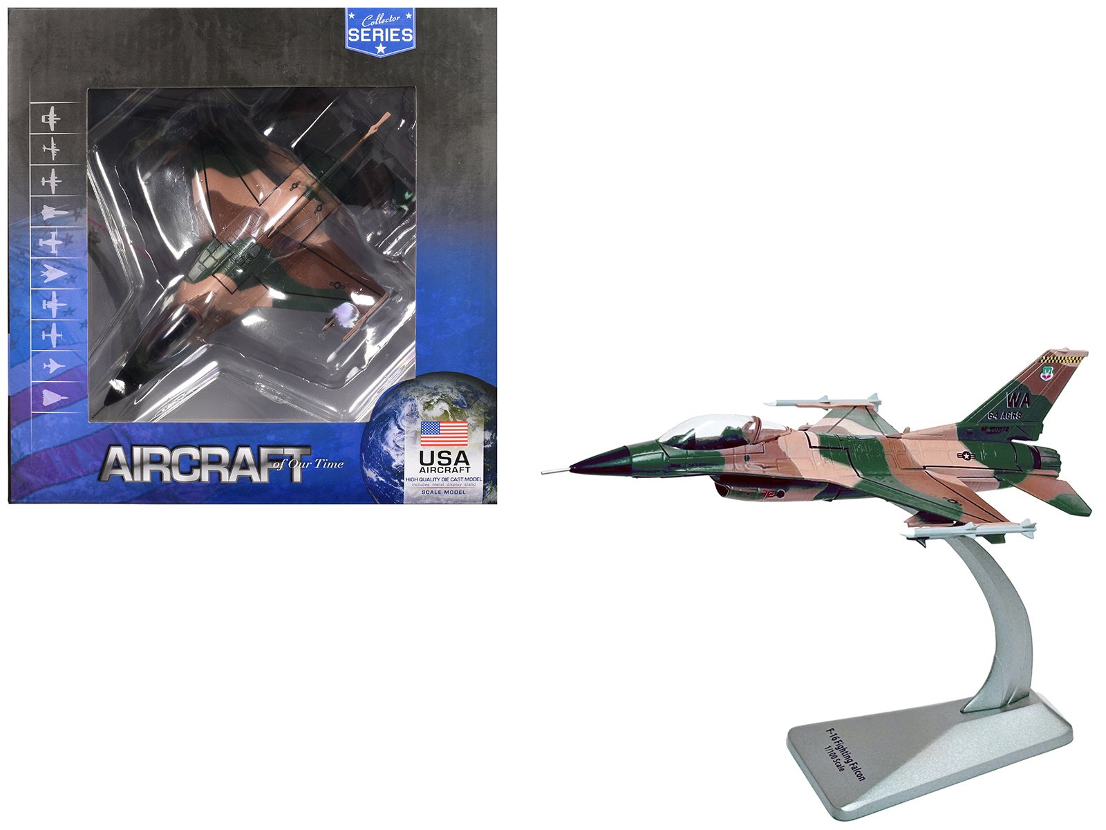 - Brand new 1/100 scale diecast model of Lockheed F-16C Fighting Falcon Fighter Aircraft “Block 32, 64th Aggressor Squadron, Nellis AFB” (2007) United States Air Force “Collector Series” die cast model by Air Force 1.
