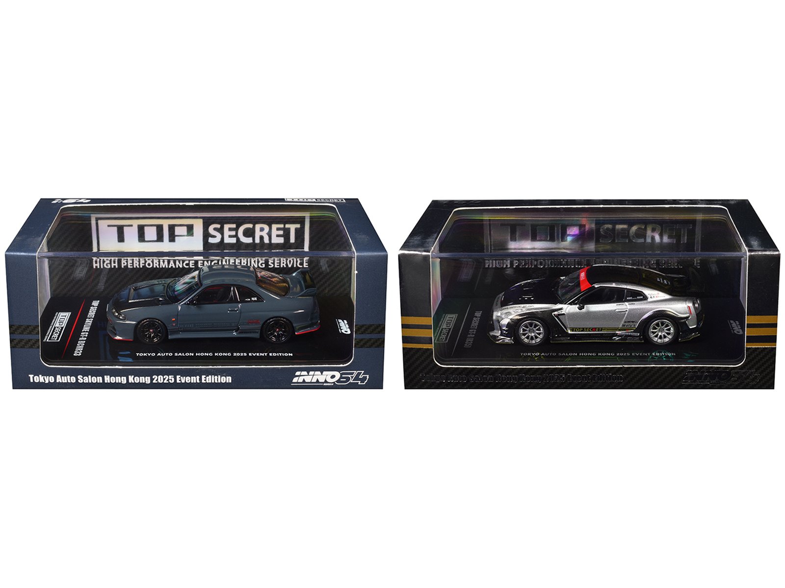 - Brand new 1/64 scale diecast car models of Nissan Top Secret “Tokyo Auto Salon Hong Kong 2025 Event Edition” Set of 2 Pieces die cast model cars by Inno Models.